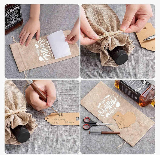 12Pcs Premium Burlap Wine Bags and 12Pcs Gift Tags, Reusable Wine Gift Bags with Drawstrings,