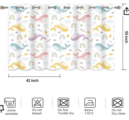 YISURE Nursery Cartoon Curtains, Colored Dolphin Blackout Curtain for Kids' Bedroom, Darkening Eyelet Window Drapes with Grommets- 42x55 Inch 2 Panels